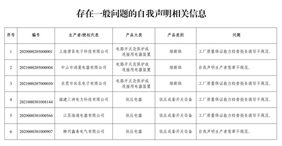 本次核查工作覆蓋實施CCC認證自我聲明評價方式的電路開關及保護或連接用電器裝置低壓電器、小功率電動機、電動工具、電焊機、家用和類似用途設備、電子產品及安全附件、車輛及安全附件等全部8類產品。核查發現14份自我聲明存在報送空白符合性信息等嚴重問題,441份自我聲明存在報送信息不規范等一般問題。