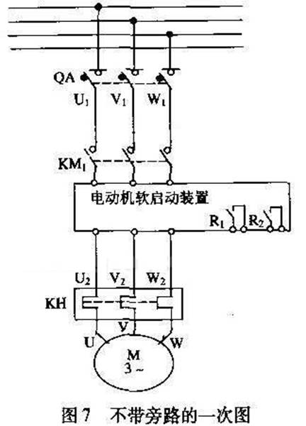 諧波污染,延長晶閘管壽命),電機進入穩態運行狀態,停車時先切斷旁路接觸器,然后由