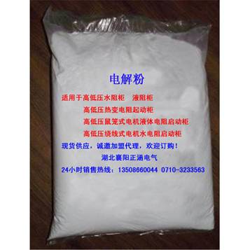 水阻柜專用電解粉是配高低壓液體電阻軟起動柜專用產品。俗稱電液粉,電阻粉,液阻粉,變阻粉,水電阻粉電解粉,啟動粉,變阻液,電解液,電阻液)又稱高低壓水電阻軟起動柜電解粉。