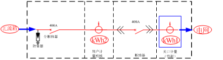 并網接入柜安裝在光伏發電的并網點,主要由主斷路器、分斷路器、電流互感器、測控表計、關口計量等設備組成。