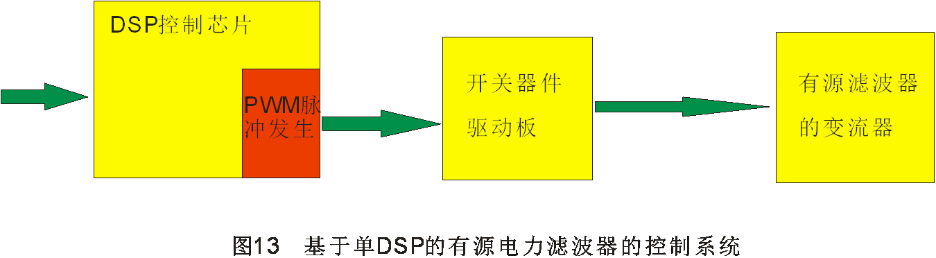 隨著微電子技術(shù)的快速發(fā)展,產(chǎn)生PWM脈沖的數(shù)字電路和具有可編程功能的器件快速發(fā)展因而通過專門電路或通過可編程邏輯器件實(shí)現(xiàn)PWM脈沖發(fā)生器已非常方便而且在速度和分辨率方面有看顯著的提高,因此有源電力濾波器的控制系統(tǒng)已經(jīng)逐步變成純數(shù)字的控制系統(tǒng)。與其他的電力電子裝置類似,根據(jù)有源濾波器控制算法的復(fù)雜性我們可以選擇不同的數(shù)字控制系統(tǒng)來實(shí)現(xiàn)。通常的控制系統(tǒng)一般有基于單數(shù)字信號處理芯片的帶有PWM信號的控制系統(tǒng),即如圖13所示的控制系統(tǒng)。由于DSP本身帶有PWM脈沖產(chǎn)生部分,因此采用單片的DSP就可以實(shí)現(xiàn)有源電力濾波器的控制系統(tǒng)。